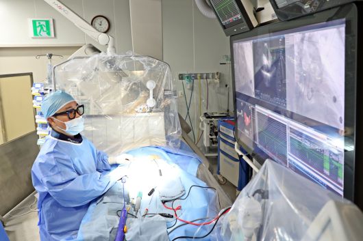 백용수 인하대병원 심장내과 교수가 펄스장 절제술을 시행하고 있다. 인하대병원 제공 |