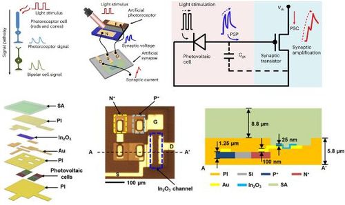 이번에 개발된 소자는 실리콘 태양전지와 시냅스 트랜지스터를 직렬로 연결한 구조로, 빛을 전기 신호로 변환하는 과정에서 생물학적 시냅스와 유사한 신호 증폭 및 기억 기능을 동시에 수행한다.