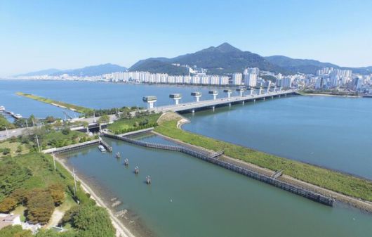 낙동강 하굿둑 전경. 정부는 올해 하반기까지 '국가물관리기본계획'을 변경해 4대강 재자연화 등 핵심 국정과제를 반영하겠다고 발표했다. (사진출처=기후에너지환경부) |