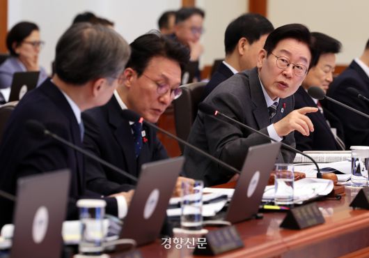 이재명 대통령이 20일 청와대에서 열린 국무회의에서 발언하고 있다. 청와대사진기자단 |
