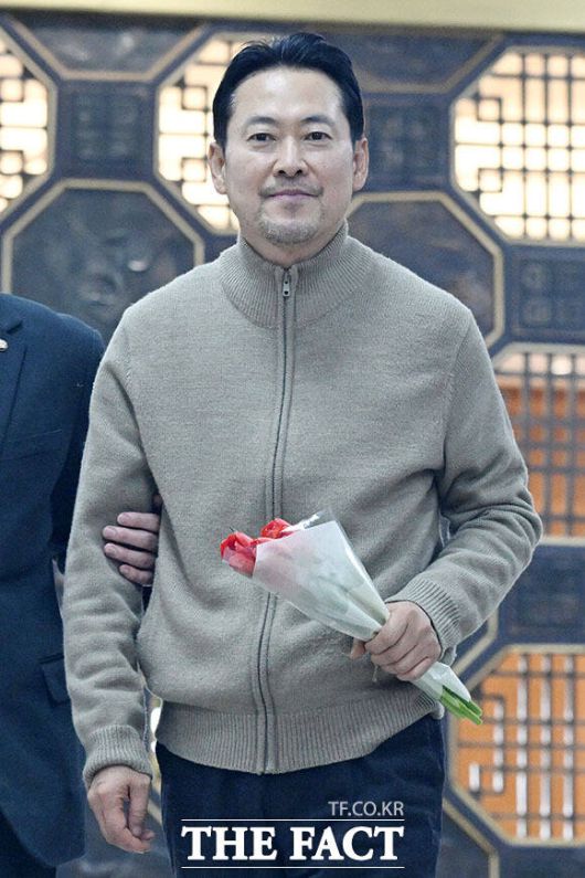 [더팩트ㅣ국회=남용희 기자] 쌍특검 수용을 요구하며 엿새째 단식을 이어가고 있는 장동혁 국민의힘 대표가 20일 오후 서울 여의도 국회 로텐더홀에서 지지자에게 받은 꽃을 들고 이동하고 있다.