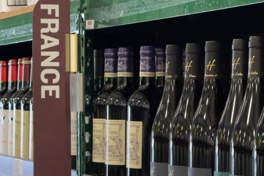 지난해 3월 미국 캘리포니아주의 한 주류판매점에 진열된 프랑스산 와인.로이터연합뉴스 |