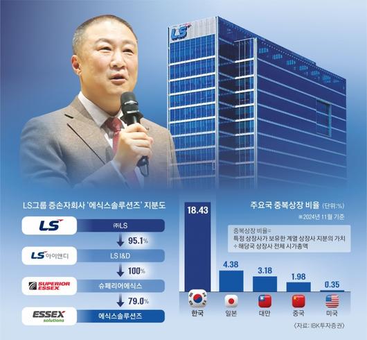 LS그룹 증손자회사 ‘에식스솔루션즈’ 지분도 및 주요국 중복상장 비율. |