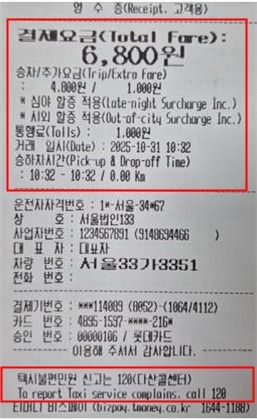 이에 따라 서울시는 지난달부터 택시 결제기 운영사인 티머니모빌리티와 협력해 영수증에 최종 요금, 승·하차 시간 등을 영문으로 병기하고 심야·시계외 할증 여부를 명확히 표시하도록 개선했다. 영수증 하단에는 ‘택시 불편 신고(120 다산콜센터)’ 안내 문구도 함께 기재된다.