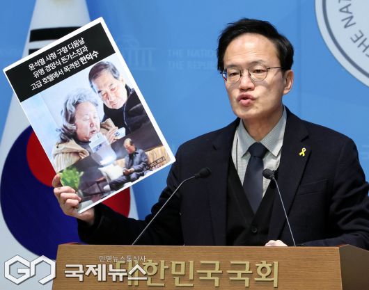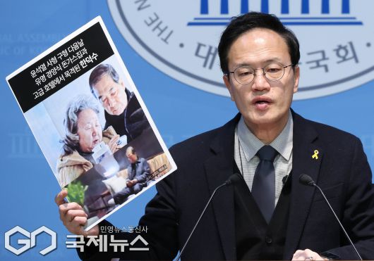 (서울=국제뉴스) 박주민 더불어민주당 의원이 20일 오전 서울 여의도 국회 소통관에서 한덕수 전 국무총리 1심 선고를 앞두고 입장 발표를 하고 있다. 박 의원은 기자회견에서 "윤석열 정부 국무위원 중 첫번째 사법판단인 한덕수 전 총리를 법정구속하고 역사를 바로 세워야 한다"고 주장했다./사진=이용우 기자