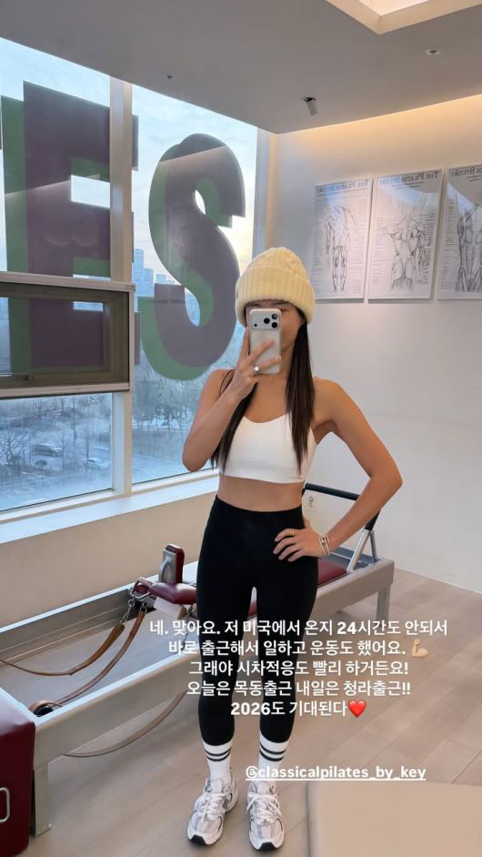 하원미는 19일 자신의 계정에 "네. 맞아요. 저 미국에서 온 지 24시간도 안 되서 바로 출근해서 일하고 운동도 했어요. 그래야 시차 적응도 빨리 하거든요. 오늘은 목동 출근, 내일은 청라 출근!! 2026도 기대된다"라는 멘트와 함께 사진을 공개했다.