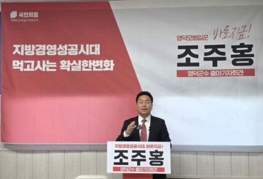 조주홍 전 국회부의장 선임 비서관이 19일 영덕군청 브리핑룸에서 오는 6월 3일 제9회 전국동시지방선거 영덕군수 선거 출마를 공식 선언했다.