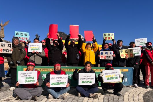 전국행동은 20일 청와대 앞에서 기자회견을 열고 "기후위기 시대에 역행하는 수도권 집중 전력 정책이 지역의 희생을 강요하고 있다"며 산단 및 송전선로 계획의 전면적인 수정을 요구했다.