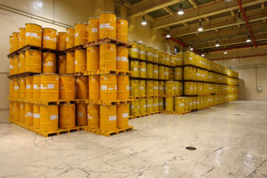 경북 경주 중저준위 방사성폐기물 처분장 안에 폐기물이 담긴 철제 통이 쌓여 있다. 한국수력원자력 제공 |