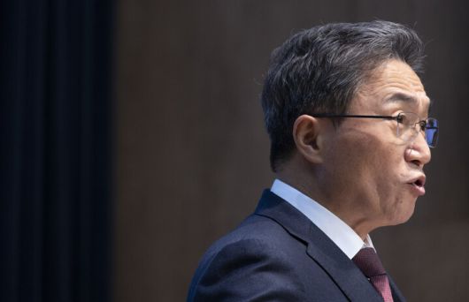 이학재 인천국제공항공사 사장이 20일 국회 소통관에서 ‘대통령실의 인천공항 공사 불법 인사 개입’을 주장하는 기자회견을 하고 있다. 연합뉴스 |