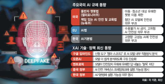 딥페이크·가짜뉴스 같은 인공지능(AI) 부작용을 예방하기 위해 글로벌 빅테크를 중심으로 ‘설명 가능한 AI(XAI)’ 기술이 주목받고 있다. 유럽에 이어 미국·한국 등 전 세계적으로 AI 규제가 본격적으로 확산하는 조짐을 보이면서 이에 대응한 신기술로서 XAI 개발 경쟁이 업계 최전선에서부터 치열해지고 있다.