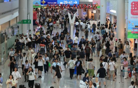 지난해 7월23일 인천국제공항 면세점이 해외로 떠나는 여행객 등으로 붐비고 있다. 연합뉴스 |