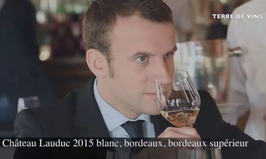 2017년 2월 에마뉘엘 마크롱 프랑스 대통령이 세미용·소비뇽블랑 품종으로 빚은 보르도 화이트와인을 블라인드 테이스팅 하는 모습. 유튜브 채널 Vincent POUSSON 갈무리 |