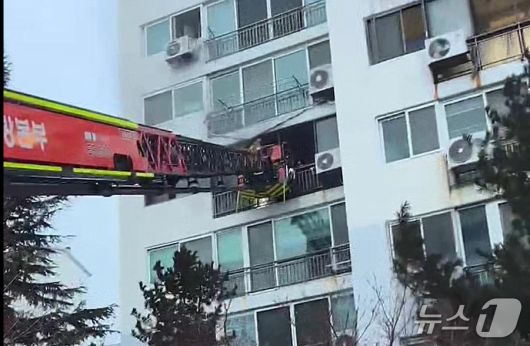 아파트 내부에 연기가 빠르게 확산하는 점을 고려해 사다리차로 어린이 3명과 보호자 1명을 구조했다.