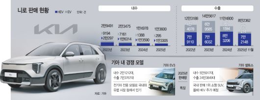 업계 관계자는 "기아 입장에서 니로는 친환경 전략의 출발점이자 글로벌 볼륨 모델"이라며 "셀토스와 EV3 사이에서 애매해진 국내 입지를 어떻게 정리하느냐가 송호성 사장의 다음 과제가 될 것"이라고 말했다.