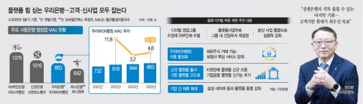 우리은행의 목적은 명확하다. 우리WON뱅킹을 비롯한 플랫폼 점유율을 끌어올려 신규 고객층을 확대하는 것이다. 이를 위해 올해 핵심 플랫폼인 우리WON뱅킹에 다양한 신규 기능과 서비스를 순차적으로 탑재한다. 1분기 중 기존 증권사 MTS를 고도화해 해외주식 거래 기능을 추가하고, 2분기에는 동양·ABL생명의 핵심 서비스를 도입한 '보험 홈'을 구축해 고객이 보험 상품을 손쉽게 확인할 수 있도록 할 방침이다. 증권·보험사와의 고객 기반 연계를 통해 시너지 효과를 극대화하겠다는 복안이다.