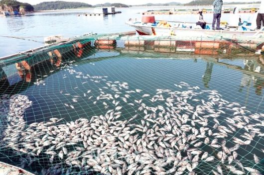 여름철 고수온 현상으로 양식장 물고기가 대량으로 폐사했다. 연합뉴스 |