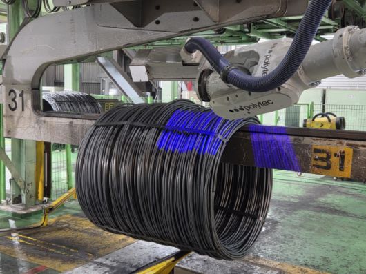 현대제철 '선재 태깅 로봇'이 제품에 태그를 부착하는 모습 [사진=현대제철] |
