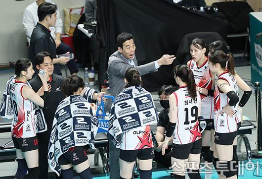 [스포츠투데이 권광일 기자] 2025-2026 진에어 V-리그 여자부 GS칼텍스-정관장 경기가 20일 서울 장충체육관에서 열렸다. 정관장 고희진 감독이 작전타임을 갖고 있다. 2026.01.20. [스포츠투데이 권광일 기자 sports@stoo.com]