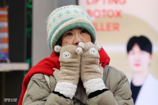 전국 대부분 지역에 올겨울 최강 한파가 찾아왔다. 절기상 ‘대한’인 20일 방한 용품을 착용한 시민과 외국인 관광객이 강추위 속에 서울 명동 거리를 지나가고 있다. 한파는 주말까지 이어진다.