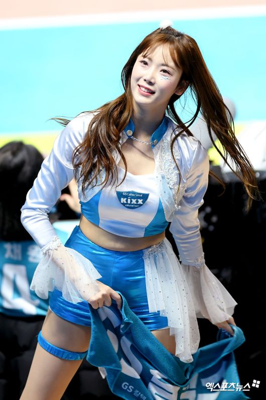 (엑스포츠뉴스 장충, 고아라 기자) 20일 오후 서울 장충체육관에서 열린 '진에어 2025-2026 V-리그' GS칼텍스와 정관장의 경기, 아야카 치어리더가 열띤 응원을 펼치고 있다. 고아라 기자 iknow@xportsnews.com