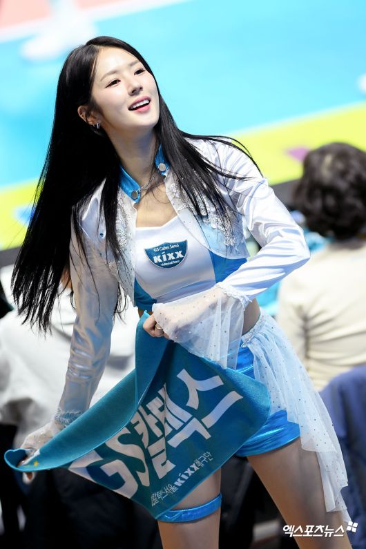 (엑스포츠뉴스 장충, 고아라 기자) 20일 오후 서울 장충체육관에서 열린 '진에어 2025-2026 V-리그' GS칼텍스와 정관장의 경기, 박기량 치어리더가 열띤 응원을 펼치고 있다. 고아라 기자 iknow@xportsnews.com