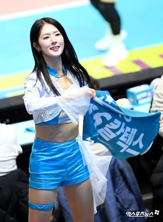 (엑스포츠뉴스 장충, 고아라 기자) 20일 오후 서울 장충체육관에서 열린 '진에어 2025-2026 V-리그' GS칼텍스와 정관장의 경기, 박기량 치어리더가 열띤 응원을 펼치고 있다.고아라 기자 iknow@xportsnews.com