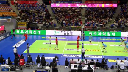 1세트부터 강한 서브로 기선 제압에 나선 한국전력.