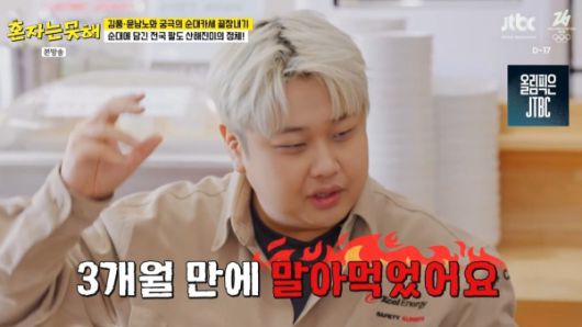 20일 방송된 JTBC '혼자는 못 해'에 요리하는 김풍 작가와 요리하는 돌아이 윤남노 셰프가 출연했다.