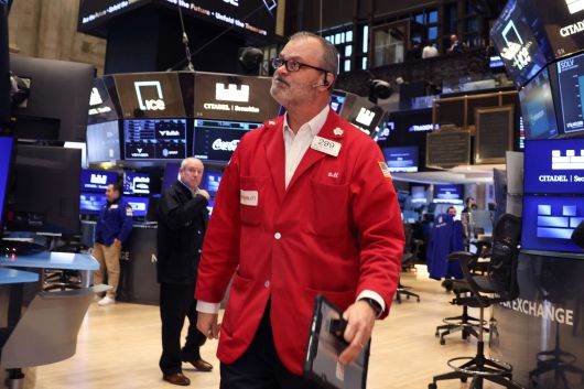 미국 뉴욕증권거래소(NYSE) 입회장에서 트레이더들이 업무에 나서고 있다. /AFP 연합뉴스 |