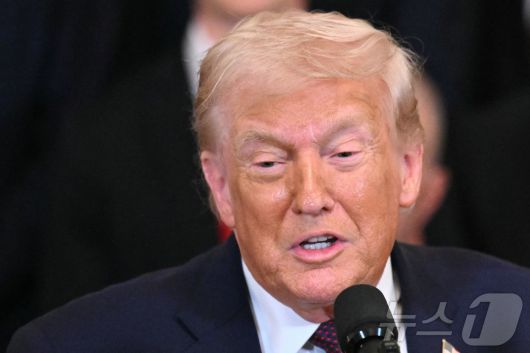 도널드 트럼프 미국 대통령이 15일(현지시간) 워싱턴DC 백악관에서 NHL 스탠리컵 우승팀 플로리다 팬서스를 축하하며 연설하고 있다. 2026.1.15 ⓒ AFP=뉴스1 ⓒ News1 김경민 기자 |