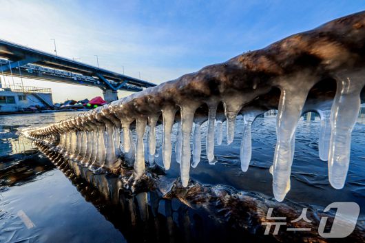 한파주의보가 발효된 20일 서울 광진구 인근 한강에 고드름이 얼어있다. 2026.1.20/뉴스1 ⓒ News1 이호윤 기자 |