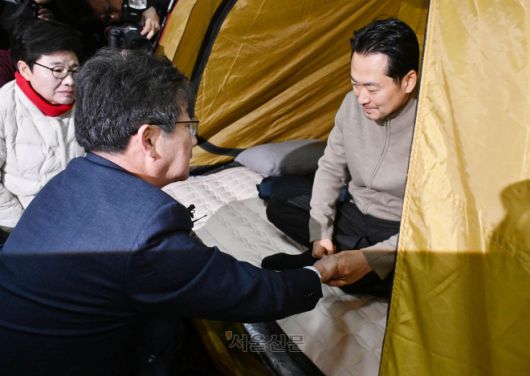 초선 의원 10여명도 장 대표를 찾은 뒤 “야당 대표가 목숨 걸고 결기를 보이는데 민주당은 다 어디 갔나”라며 “청와대 앞에서 규탄 시위를 하는데 새 정무수석은 코빼기도 안 비쳤다”고 지적했다. 장 대표는 페이스북에 “민주당은 미동도 없다. 정권이 흔들릴 정도의 부패가 있는 것”이라고 했다.