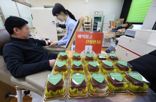 헌혈하고 ‘두쫀쿠’ 받으세요 - 20일 인천 연수구 대한적십자사 인천지사 헌혈의 집 연수센터에서 시민들이 헌혈하고 있다. 대한적십자사는 겨울철 혈액 부족 사태를 해소하기 위해 최근 인기가 치솟은 ‘두쫀쿠’(두바이 쫀득 쿠키) 증정 이벤트까지 내걸고 있다. 연합뉴스 |