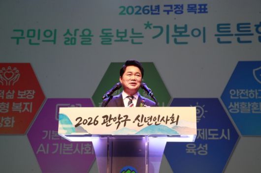 박 구청장은 ▲기본적인 삶을 보장받는 맞춤형 복지 강화 ▲인공지능(AI) 기본사회 ▲힐링·정원 도시 관악 ▲혁신경제도시 육성 ▲안전하고 쾌적한 생활환경 ▲청년이 머물고 교육·문화가 생동하는 도시 등 6개 분야의 구정 방향을 밝혔다. 박 구청장은 “전 생애 통합돌봄 기반을 조성하고 치매 안심마을을 모든 동으로 확대하겠다”고 설명했다. 관악구는 키즈카페를 확충하는 한편, 어르신 복지시설을 갖춘 구립 노인종합복지타운을 건립 중이다.