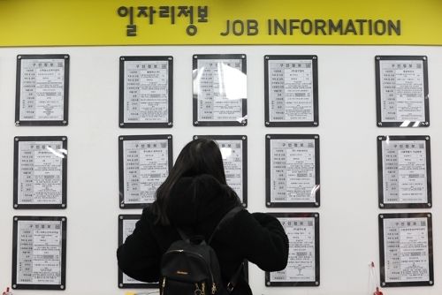 17일 서울 마포구 서울서부고용복지플러스센터에서 구직자들이 취업 공고를 둘러보고 있다. 2025.3.17 연합뉴스 |