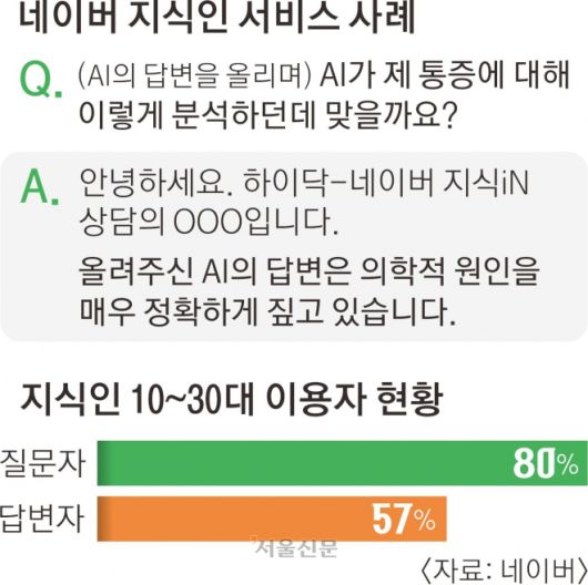 생성형 인공지능(AI) 물결 속에 네이버의 지식공유 서비스인 ‘지식인(iN)’이 MZ세대(1980~2000년대생)를 중심으로 꾸준히 이용되면서 그 배경에 관심이 쏠린다. 젊은 이용자들이 AI가 주는 정답보다 타인의 경험담과 의견 속에서 지혜는 물론 공감과 위로를 받는다는 분석이 나온다.