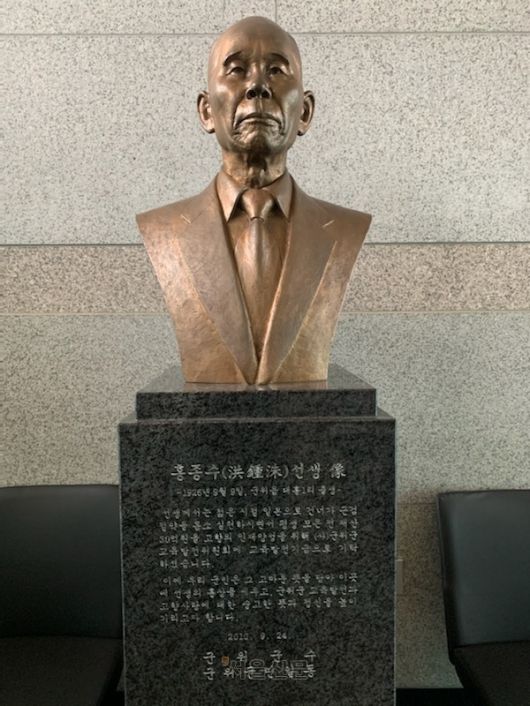 대구 군위군에 교육발전기금 30억원을 기탁한 재일교포 출향인 고 홍종수 선생의 흉상. |