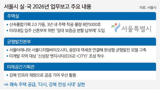시 균형발전본부는 ‘다시, 강북 전성 시대’ 원년을 맞아 서울 전역이 균형 있게 성장하는 구조를 만들겠다고 보고했다. 오 시장은 올해 신년사에서 “강북이 살아야 서울이 커지고, 서울이 커져야 대한민국이 전진한다”며 “서울의 중심축인 강북을 활성화하고 새로운 성장 거점으로 발전시켜 ‘다시, 강북 전성 시대’를 열겠다”고 천명했다.