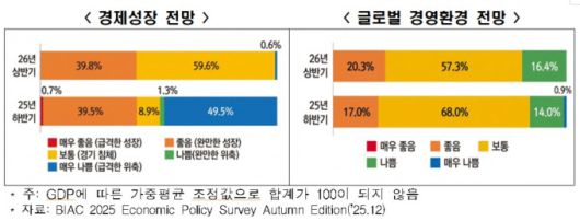 BIAC은 무역·통상과 지정학 충격이 단기 변수가 아니라 중장기 비용 요인으로 인식되기 시작했다고 해석했다. 작년 한 해 미국 관세 조치 등 통상 충격은 산업·국가별 협상 과정에서 불확실성이 일부 완화됐고, 지정학 리스크로 급등했던 에너지 가격도 비(非)OPEC 국가 증산 등으로 하향 흐름을 보였다고 설명했다. BIAC은 이와 관련해 "기업들이 경영환경의 불확실성으로 인한 고비용 구조에 적응하며 대응력을 확보중"이라고 평가했다.