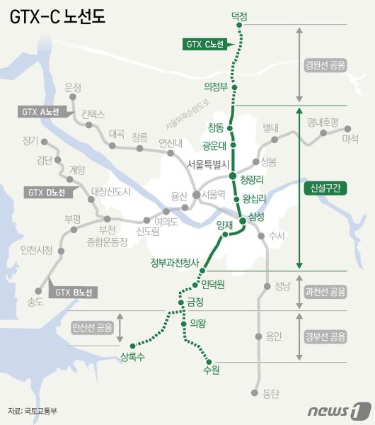 한편 GTX-C 노선은 경기 양주 덕정에서 수원까지 86.46㎞를 연결하는 사업으로, 총사업비는 4조 6084억 원 규모다. 공용 구간을 제외한 구간은 전액 민자사업으로 추진된다.