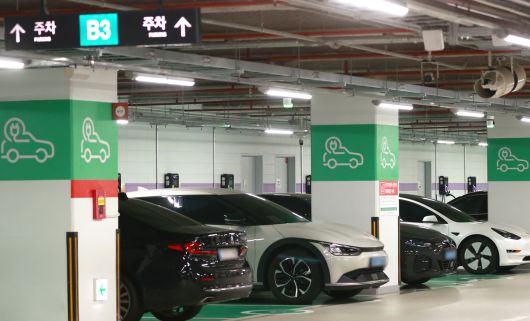 서울의 한 전기차 주차장에서 충전중인 차량들. 연합뉴스 |