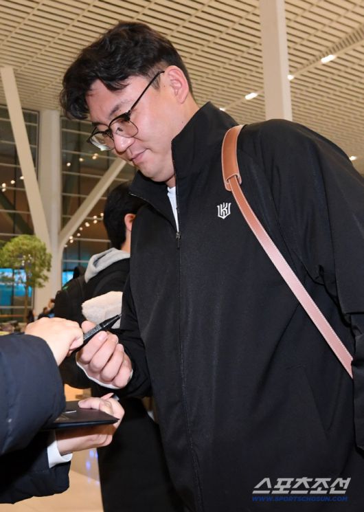 KT 위즈 선수단이 21일 인천국제공항을 통해 스프링캠프가 열리는 호주로 출국했다. 장성우가 출국 전 사인을 해주고 있다. 인천공항=박재만 기자 pjm@sportschosun.com/2026.01.21/
