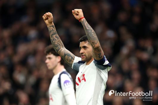 토트넘이 격차를 벌렸다. 전반 37분 우측에서 올라온 크로스를 솔란케가 슈팅으로 연결했다. 다소 빗맞았지만 볼을 절묘하게 흘러가 골대 맞고 골 라인을 넘었다. 전반전은 그대로 종료됐다.