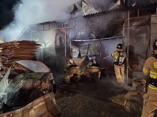 (천안=연합뉴스) 박주영 기자 = 21일 0시2분께 충남 천안시 동남구 수신면 한 목공소에서 불이 나 목재와 기계류 등 건물 내부 80여㎡를 태워 5천900만원 상당(소방서 추산)의 재산 피해를 낸 뒤 1시간20분 만에 꺼졌다.