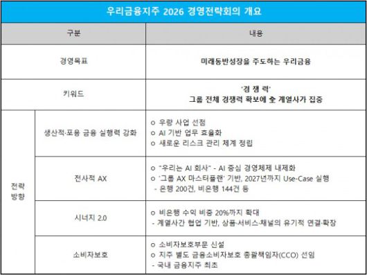 경쟁력 강화를 위한 방안으로는 ▲생산적·포용 금융 ▲전사적 AX ▲종합금융그룹 시너지 강화를 3대 핵심 전략으로 설정했다.