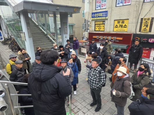새해 첫 주말을 맞은 지난 3일, 서울 영등포구 대림역 6번 출구 앞에 패딩과 귀마개, 털모자 등으로 단단히 무장한 중장년 30여 명이 무리를 지었다. 주위를 두리번거리고 사진을 찍는 등 대림을 생경하게 여기는 모습이 이곳 주민은 아닌 듯했다.