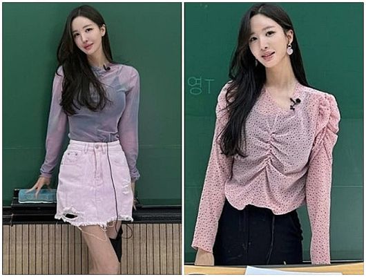 강의 자료를 들고 수업을 이끄는 모습은 연예인의 배우자가 아닌 전문 강사의 일상에 가깝다. 그러나 단정하면서도 세련된 옷차림과 또렷한 인상 때문에 관심이 몰렸다.