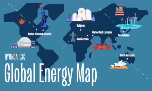 현대건설의 원전 사업 현황을 나타낸 세계 지도 |