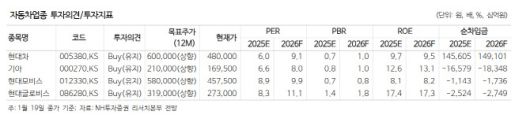하늘·정연승 NH투자증권 연구원은 “CES 2026을 기점으로 현대차그룹이 보유한 BD의 지분가치가 재평가되고 있다”며 “로보틱스 사업의 가시화에 따라 그룹사 내 각 기업들의 목표주가를 상향한다”고 밝혔다.